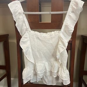 Boutique bought White sleeveless ruffle top. Great for the summer. Never worn before
