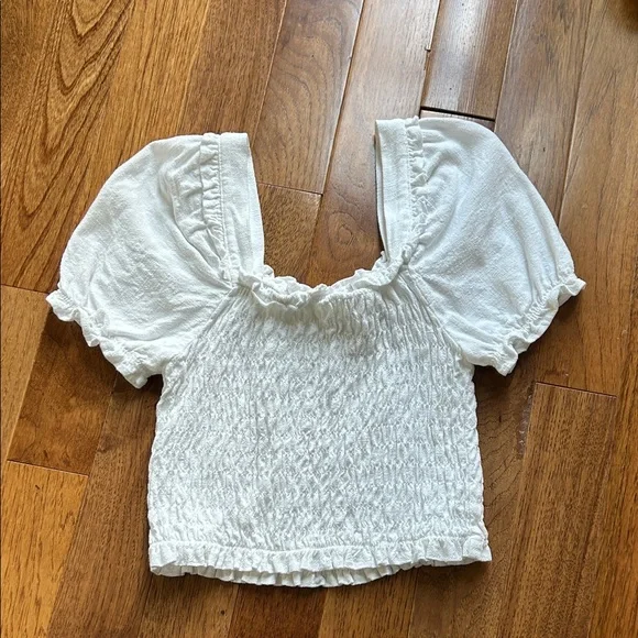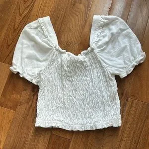 Cute white, fitted body, ruffle sleeve. Perfect for all occasions.