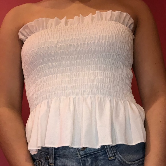 White Ruffle Tube Top. Worn once. Very slightly see through. Very stretchy