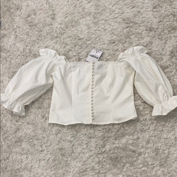 Forever 21 White ruffle sleeve top, can be off shoulder. Size small.