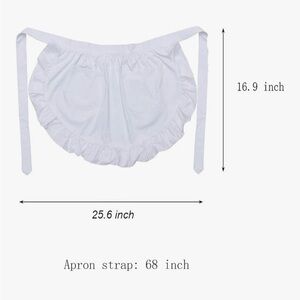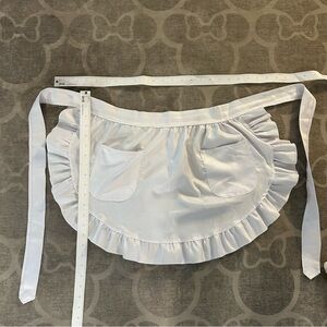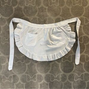 Charming white apron with ruffled edges and two front pockets. Perfect for cooking, crafting or a costume