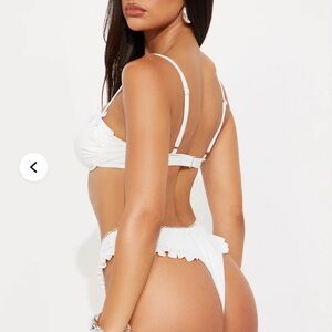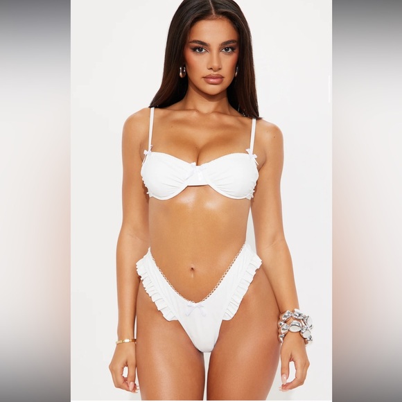 Fashion Nova white bikini set with ruffles and bow. Only tried on. Size Large. Sanitary sticker still on.
