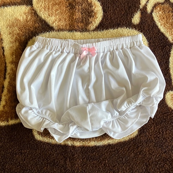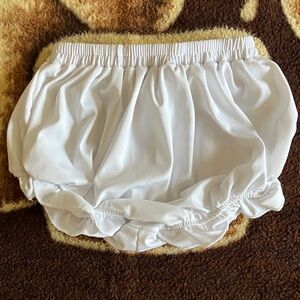 Adorable white ruffled bloomers with a cute little pink bow detail