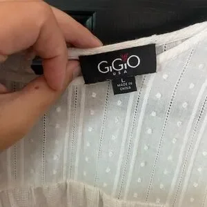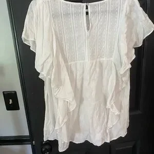 Elegant white ruffled blouse with delicate detailing. Perfect for any occasion.