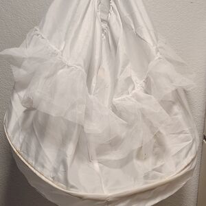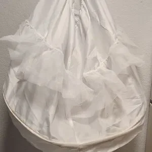 Elegant white dress hoop with ruffled details. Perfect for under wedding and quinceanera dresses