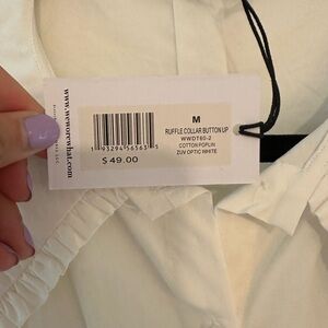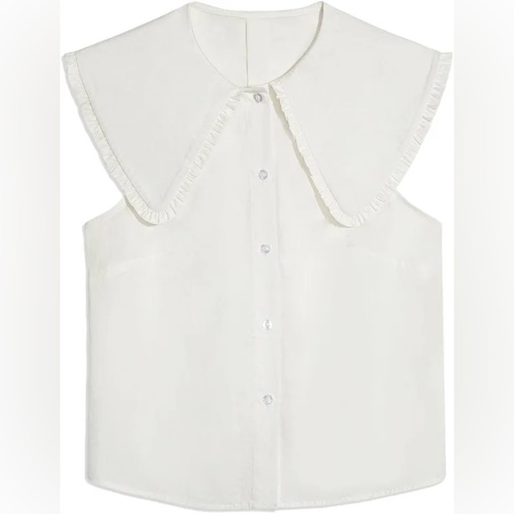 Elegant white top with a stylish ruffled collar. Perfect for any occasion.