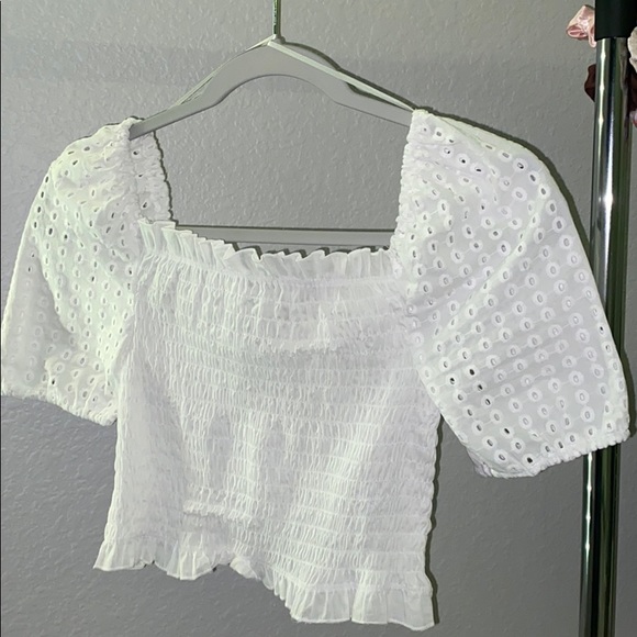 - super cute white ruffled crop top