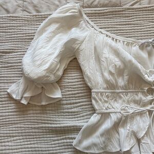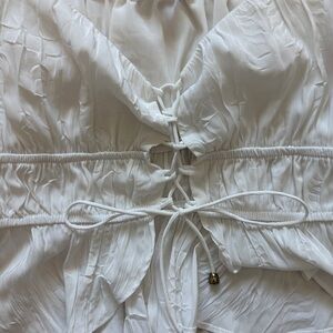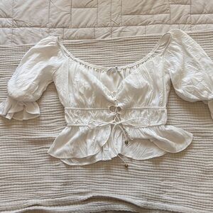 Stylish white ruffled lace up crop top