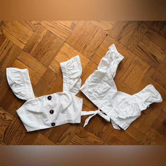 White Ruffled Cropped Tops