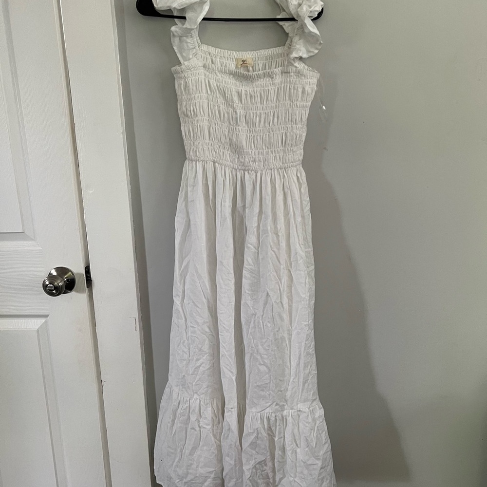 Charming white dress with ruffled straps. Perfect for any occasion. New without tag!
