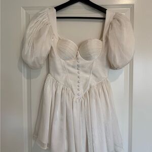 Elegant white dress with ruffled details. Perfect for special occasions.
