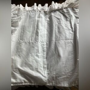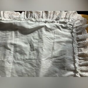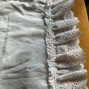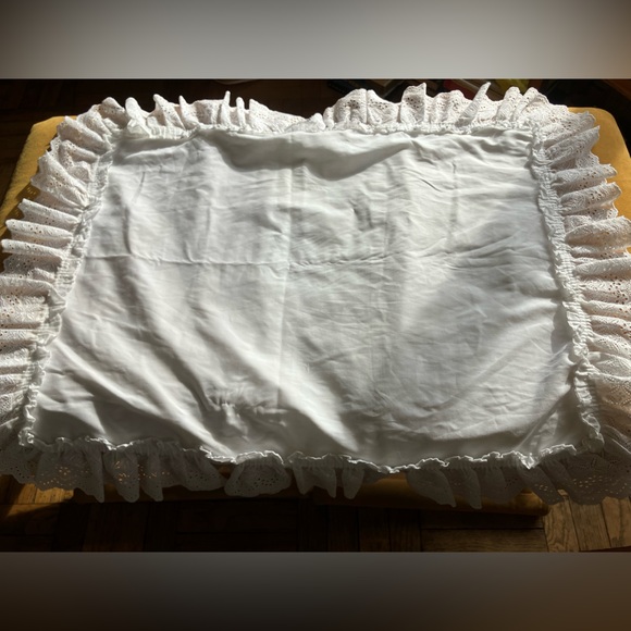 Soft white pillow sham with eyelet ruffle trim. Feminine and classic look. Lightweight fabric with decorative edge.