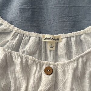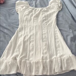 Charming white kids dress with ruffled hem and button details. Perfect for any occasion.