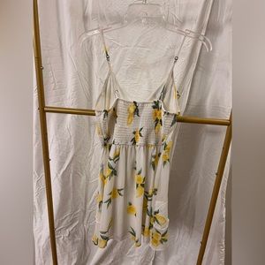 White ruffled lemon sundress. This dress is very flattering with ruffled bottom. Adjustable straps. For reference- I’m 5’7” and 140 lbs.