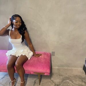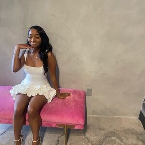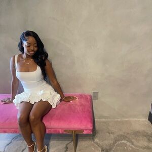 Elegant white mini dress with ruffled hem. Perfect for special occasions.