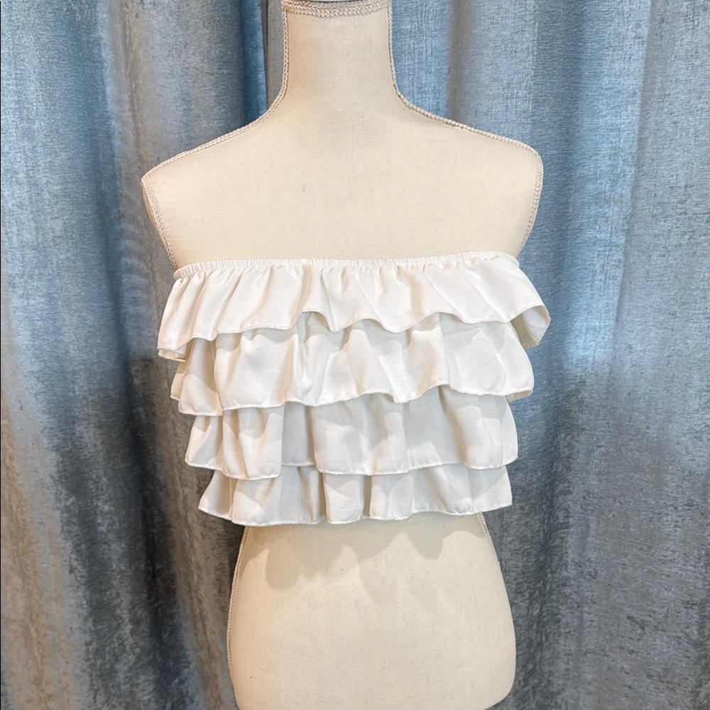 Elevate your style with this chic white ruffled off-shoulder top. Perfect for any occasion, it offers a flattering fit and a touch of elegance.