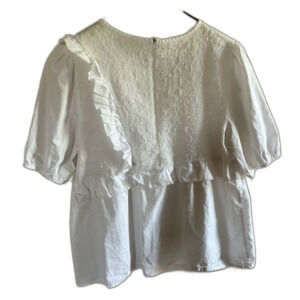 White Ruffled Puff Sleeve Blouse Womens Medium 6 8 Short