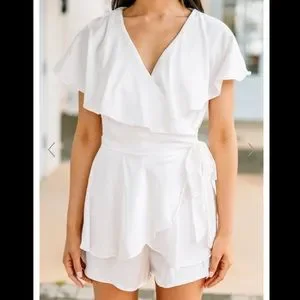 New! Never worn. White Ruffled Romper. From the Mint Julep boutique. Perfect for a bachelorette party or fun summer night!