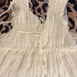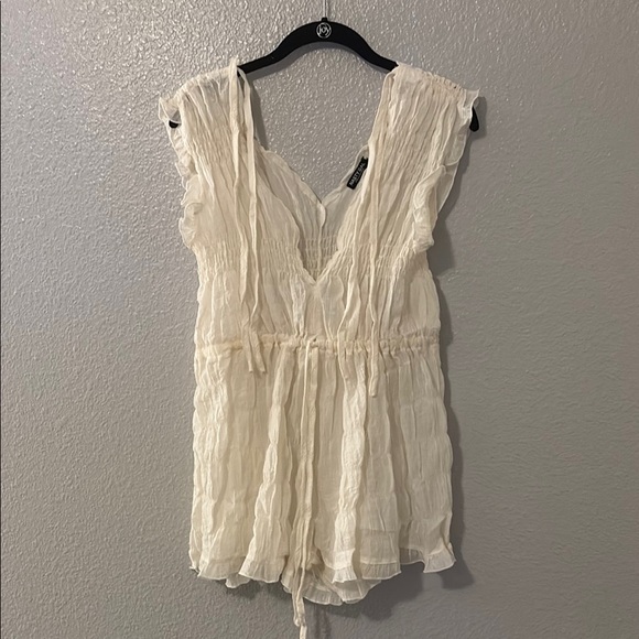 Women’s nasty gal ruffled romper, size US 0, waist string cinch in, perfect cover up for swim suits