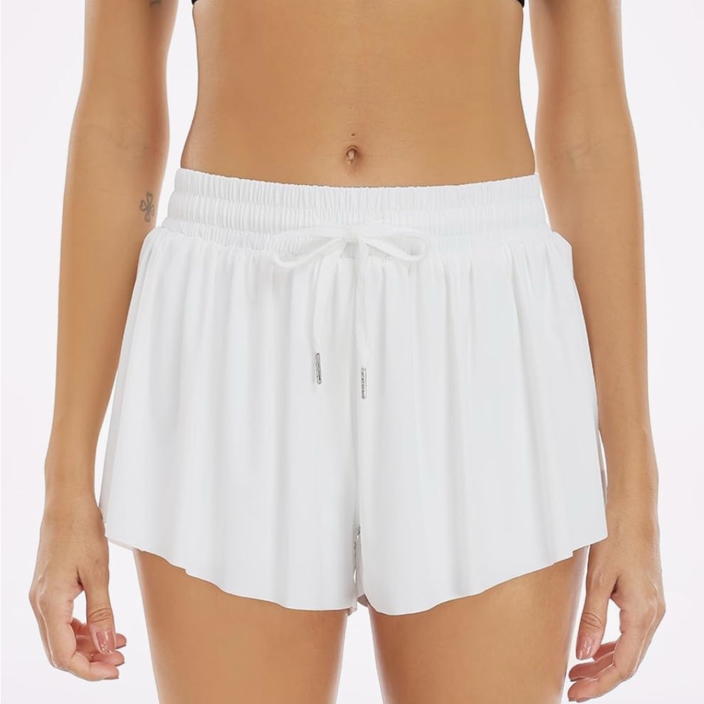 Stylish white ruffled shorts with drawstring waist. Perfect for casual outings.