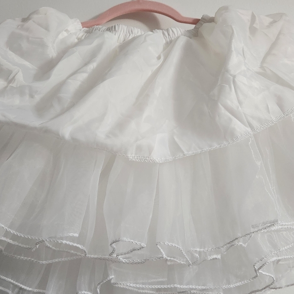 Elegant white ruffled petticoats in 2 sizes with layered design. Perfect for adding structure to your dresses.