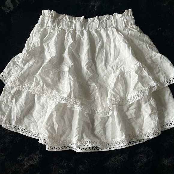 Chic white ruffled skirt with lace trim. Never worn!