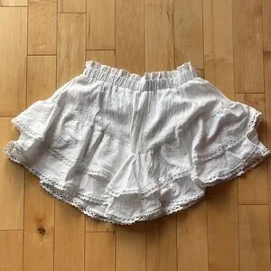 Chic white ruffled skirt with lace trim. Perfect for casual outings and layering under sweaters.