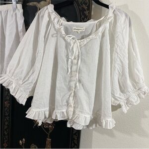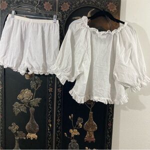 Experience comfort and elegance with this white ruffled sleepwear set. Perfect for a cozy night's sleep.