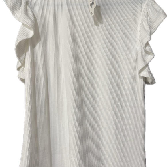 Fitted white blouse with ruffled sleeves. Never worn & comes with tag.