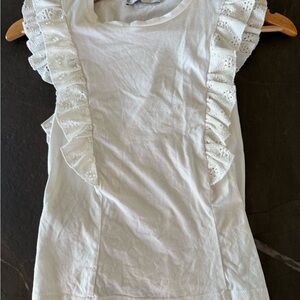 Chic white blouse with ruffled sleeves. Ideal for casual or formal wear.