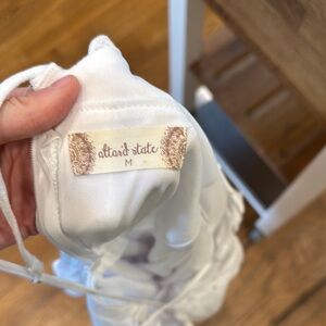 Chic white dress with ruffled details and spaghetti straps. Perfect for a casual outing. Barely worn! Size medium!!!