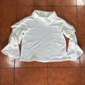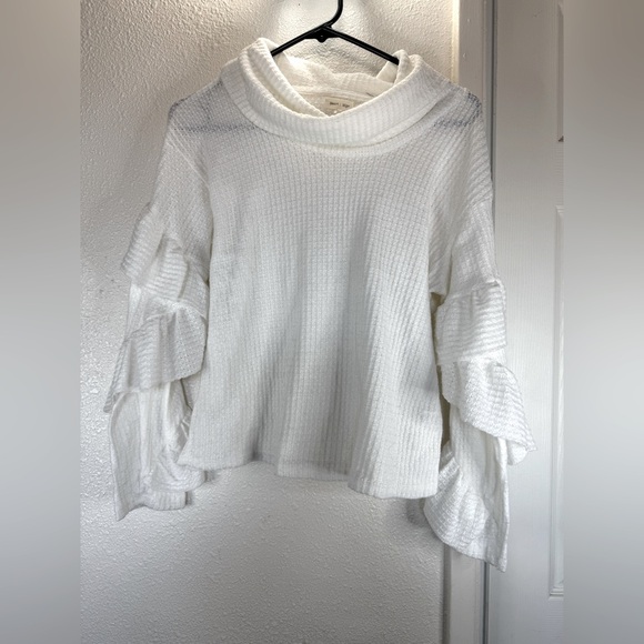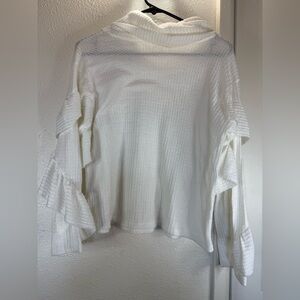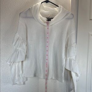 Elegant white sweater with ruffled sleeves. Perfect for a chic look.