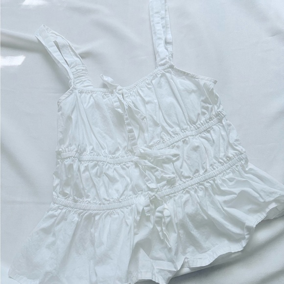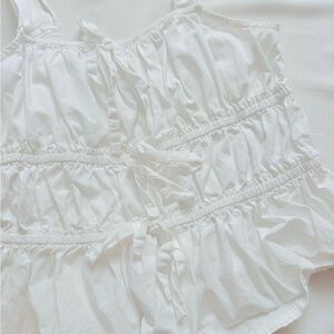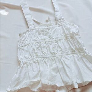 Elegant white ruffled tank top perfect for any occasion. Lightweight and stylish, ideal for warm weather. Size medium but fits like a small