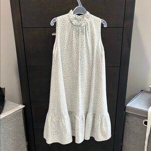 Beautiful floral off white and blue sleeveless girls size 8 dress that can be worn with the crop sweater or without it has a ruffled neck and buttons down the back.