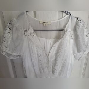 This charming new without tags white sundress features a scoop neckline and short puff sleeves, perfect for casual or resort wear. The ruffled, tiered design adds a playful touch to its midi length, making it ideal for warm weather outings. Crafted from a light, airy fabric, it offers both comfort and style.