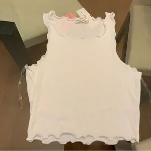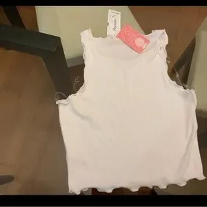 Chic white top with ruffled neckline. Perfect for any occasion.