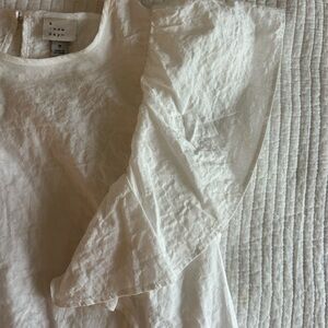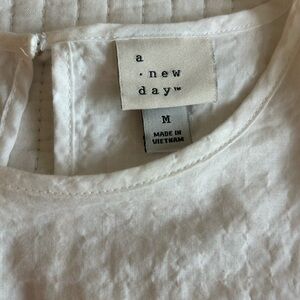 Elevate your wardrobe with this elegant white blouse from a new day, featuring a textured fabric that adds a touch of sophistication. The short puff sleeves with gathered details enhance its romantic appeal, while the crisp white color makes it a versatile choice for any occasion. Crafted from a light, airy material, this blouse is perfect for warm weather wear, offering both comfort and style.