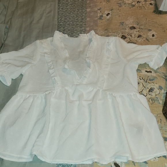 Charming white ruffled top perfect for any occasion. Soft and comfortable for all-day wear. Dress it up or down! Never worn.