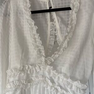 Never worn white romper with ruffled details long sleeves and a V-neck design. Perfect for summer!