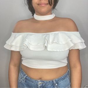 White Ruffles Winwin blouse It has an attached collar and cute ruffles Used Once Only Size M