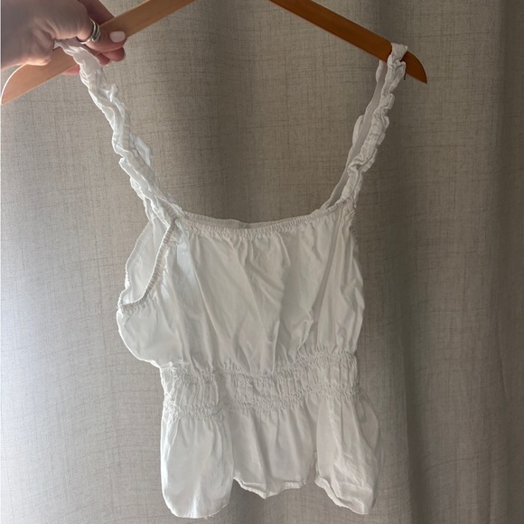 Elegant white ruffled top perfect for any occasion. Features a stylish design with a comfortable fit.