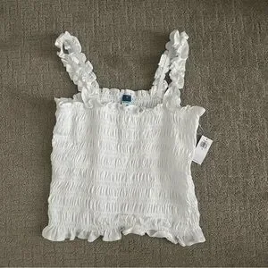 Elevate your style with this elegant white ruffled top. Perfect for any occasion, this top offers a chic and comfortable fit.