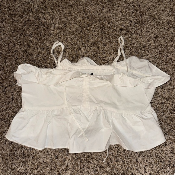 Elevate your style with this elegant white ruffled top. Perfect for any occasion, this top offers a chic and sophisticated look.