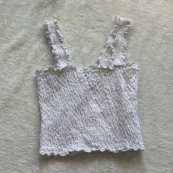 Elegant white ruffled top perfect for any occasion. Features a stylish design with comfortable fit.