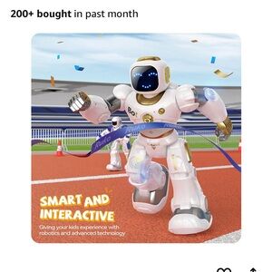 Make Friend with Carle: Kids will love this gold robot as it is like a prize color that makes your kids more confident; Also Gold Carle can play music as a speaker, your kids can enjoy hours of fun with Carle after the phone is connected to Bluetooth. Interactive white robot with remote control. Features blue LED face and silver accents.