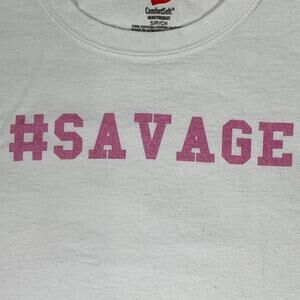 White #SAVAGE Short Sleeve Crew Neck Tee Shirt Size S/P/CH
