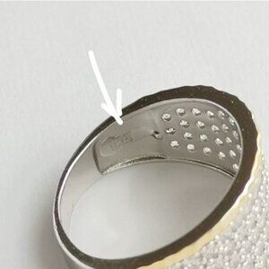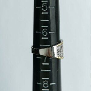 White Sapphire 14k gold and sterling silver two tone wide band ring siz…