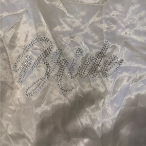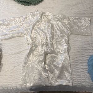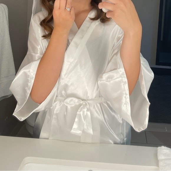 White satin robe with a smooth finish. Perfect for a bride to be! Worn once before, like new condition!