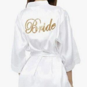 A gorgeous luxurious robe perfect for when you are having your hair done for easy in and out or for your wedding night. Never used. Fits up to XL