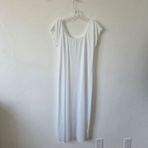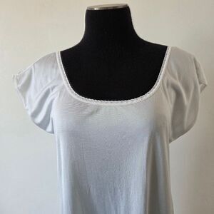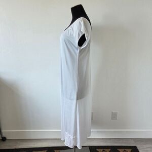 White Satin Maxi Length Slip Cap Sleeve Lace Trim Temple Ordinance Pocket Small